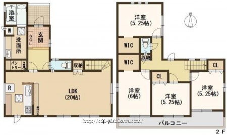 階数 区分 広さ 1F LDK 20.0帖 2F 洋 6.0帖 2F 洋 5.3帖 2F 洋 5.3帖 2F 洋 5.3帖 - 駐車場