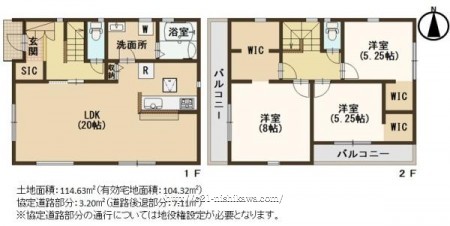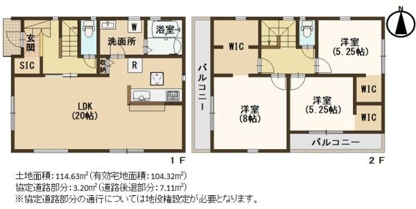 階数 区分 広さ 1F LDK 20.0帖 2F 洋 8.0帖 2F 洋 5.3帖 2F 洋 5.3帖 - 駐車場