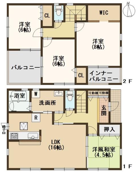 階数 区分 広さ 1F LDK 16.0帖 1F 和 4.5帖 2F 洋 8.0帖 2F 洋 6.0帖 2F 洋 6.0帖 - 駐車場